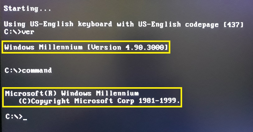 윈도우 미(Windows Millennium) 4.90.3000 버전에 사용된 MS-DOS 입니다.