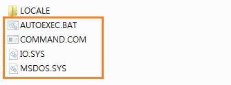LOCALE 폴더, AUTOEXEC.BAT, COMMAND.COM, IO.SYS, MSDOS.SYS 파일이 생성된 걸 확인할 수 있습니다.