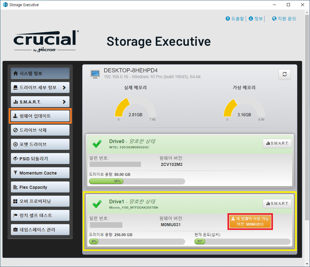 ※ Crucial Storage Executive로 마이크론 SSD 펌웨어 업데이트 하기