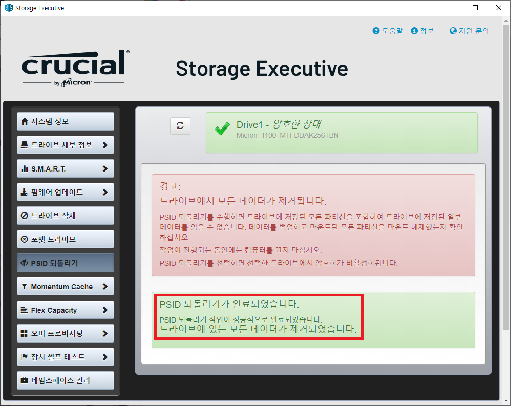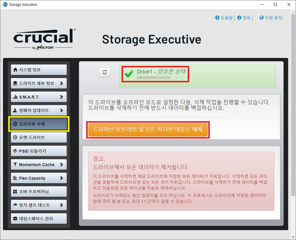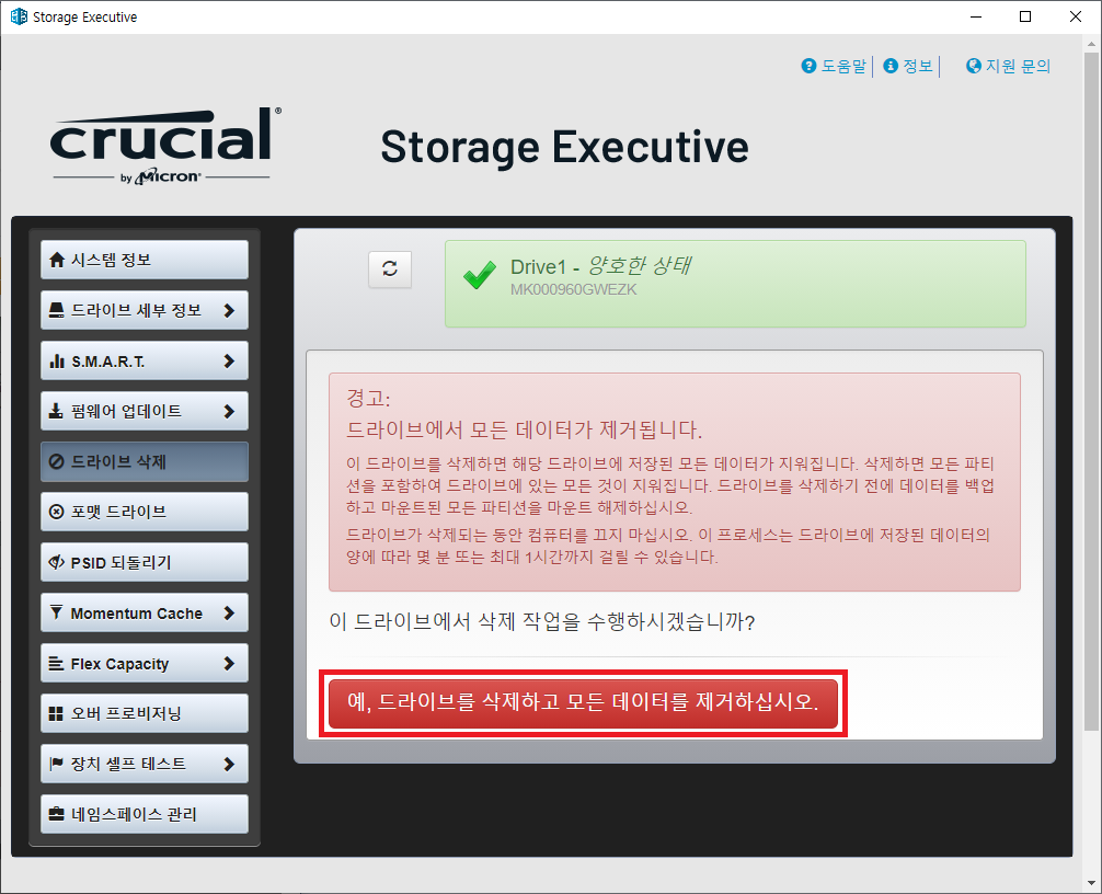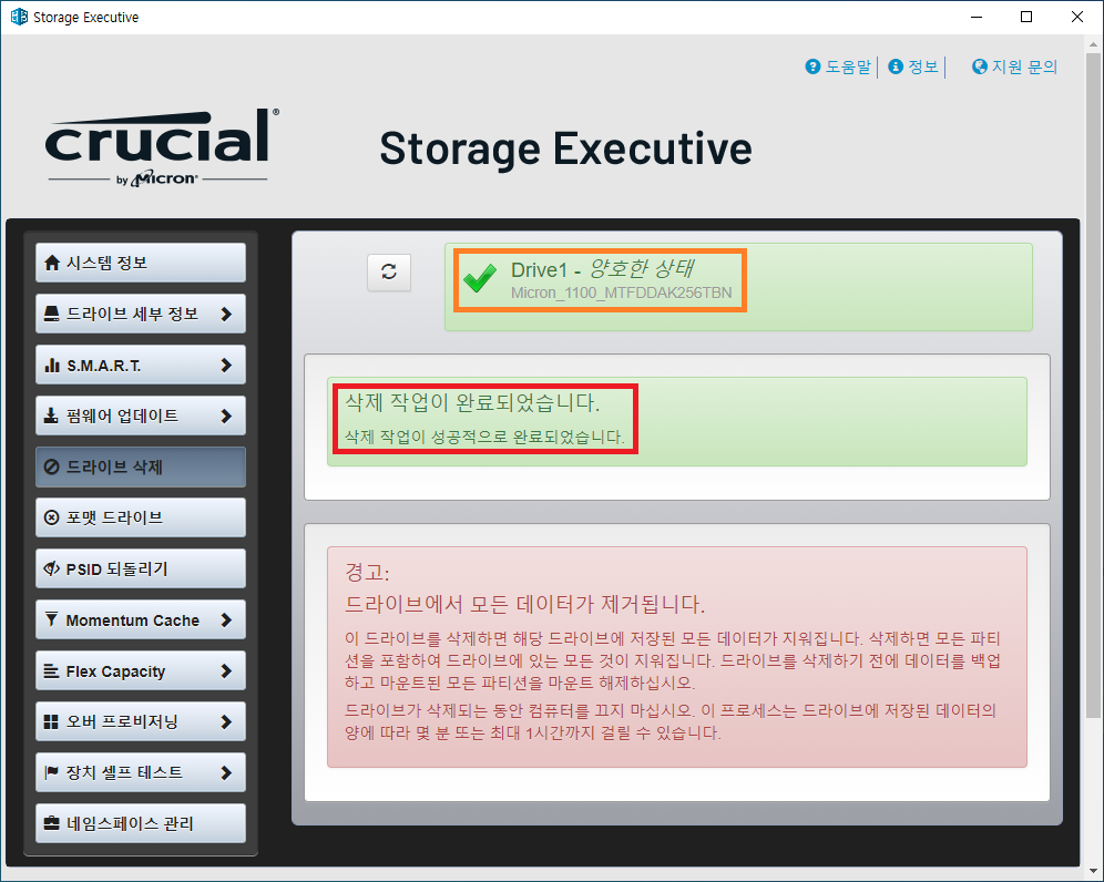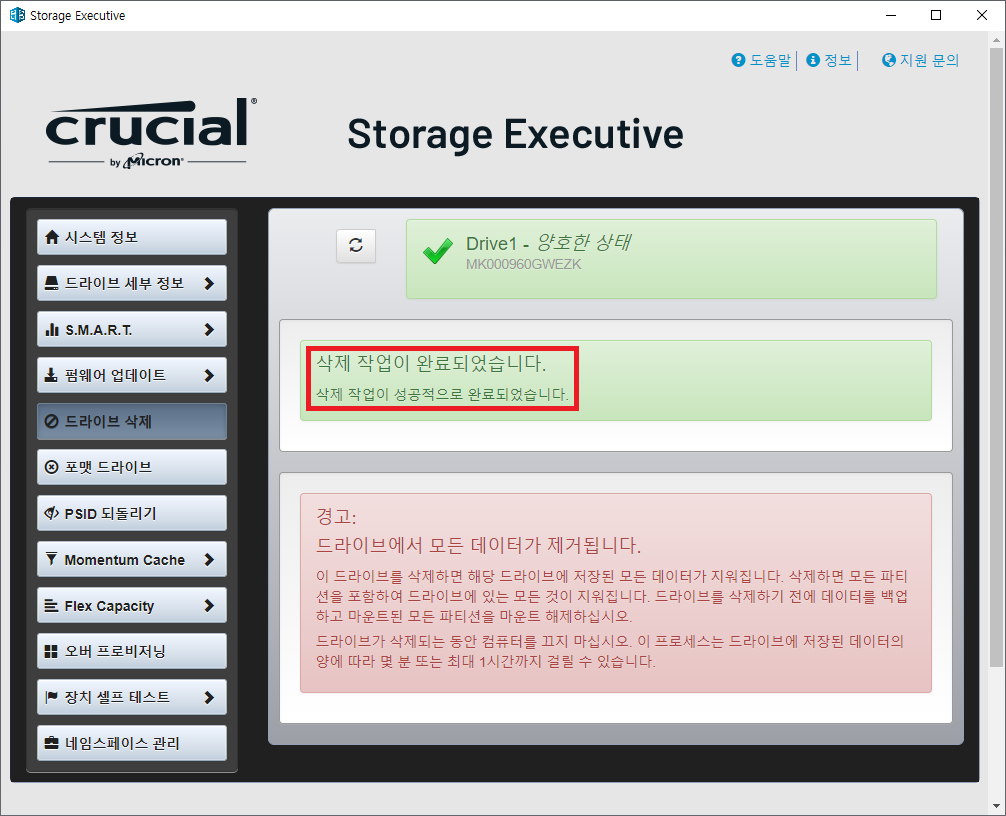 ※ 마이크론 SSD 초기화 하기 (드라이브 삭제)