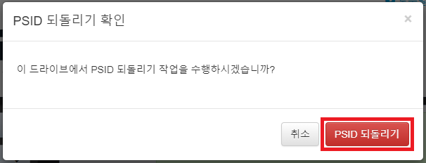 'PSID 되돌리기가 완료되었습니다.'라고 표시되면 정상적으로 작업 완료입니다.
