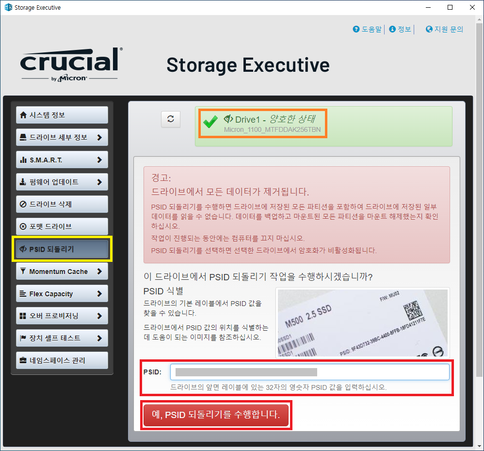 ※ 마이크론 SSD - PSID 되돌리기
