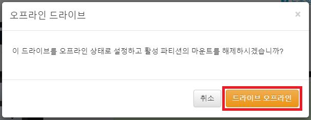 '드라이브 오프라인 및 모든 파티션 마운트 해제'를 클릭합니다.