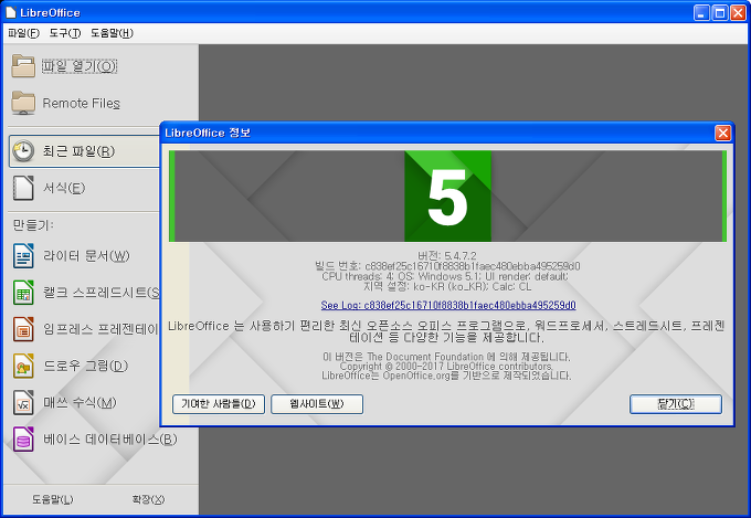 리브레 오피스도 6 버전이 나오면서 xp 지원이 중단 되었습니다.