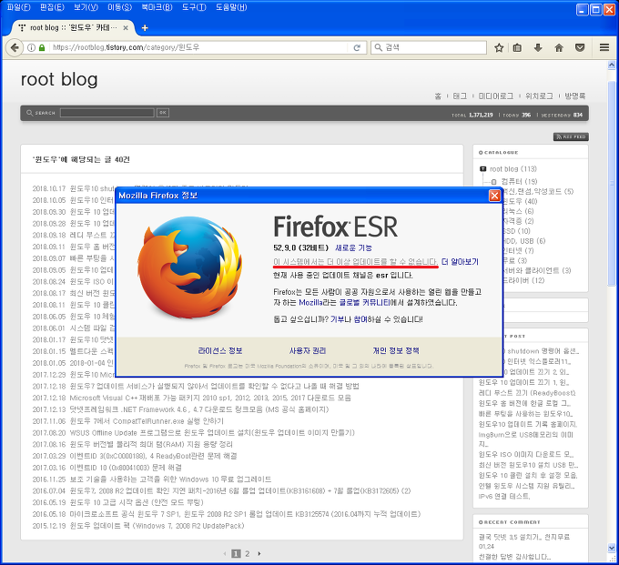 2018년 6월 14일에 나온 ESR 52.9.0 버전이 XP 지원 마지막 버전입니다.