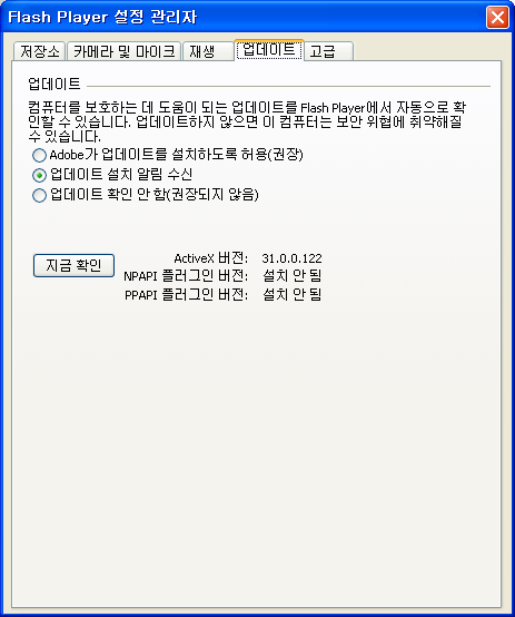 △ 플래시 플레이어 다운로드 페이지 입니다.
