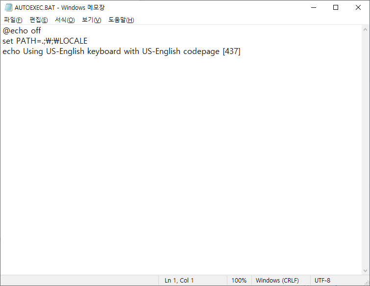 AUTOEXEC.BAT 파일의 내용을 확인해 봤는데 FreeDOS와 동일한 내용이었습니다.