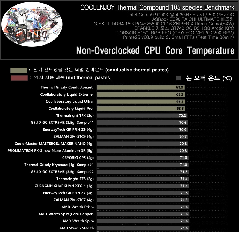 △ 쿨엔조이 2019 써멀 컴파운드 105종 종합벤치 - 테스트 결과 페이지