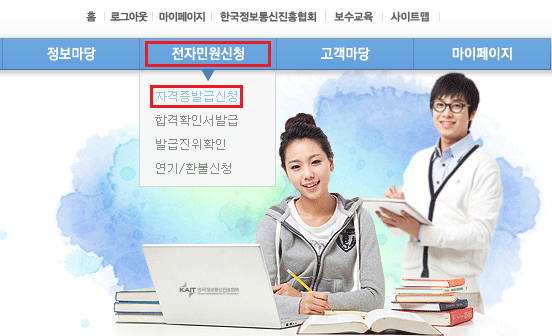 처음은 자격증을 새로 발급을 받는 방법입니다.