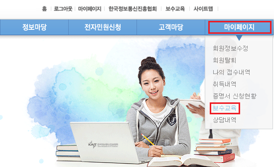 자격증이 유효기간이 만료가 되기 6개월 전부터 보수교육을 받을수 있습니다.